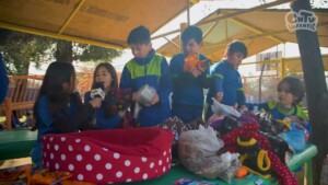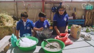 Estudiantes del Colegio San Joaquín crean el “Patio de la Calma”: un espacio de relajación con reciclaje, plantas, pinturas y muebles hechos por ellos.